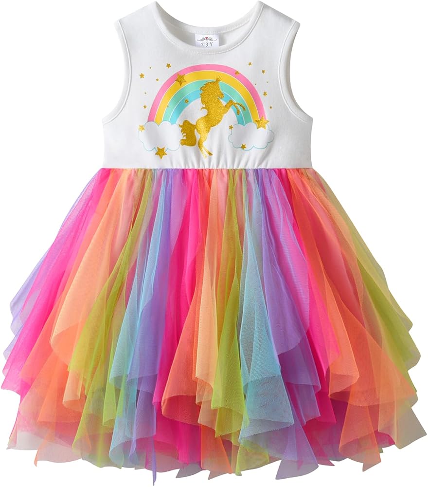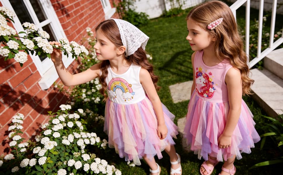 Enchanting Design & Premium Comfort: Features a soft, breathable 100% cotton top with exclusive unicorn/butterfly/flamingo/rainbow/ocean prints, paired with a whimsical, flowing multi-color tulle skirt. Perfect blend of style and comfort for all-day play.