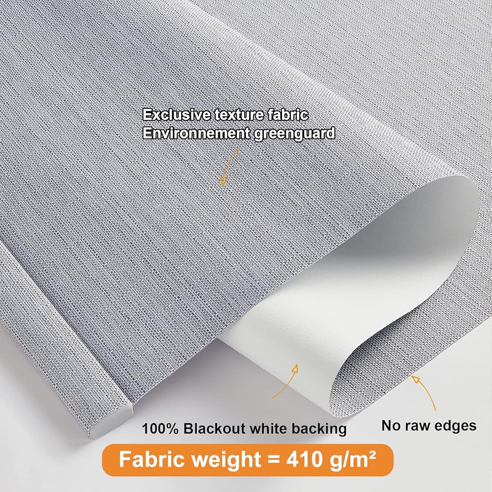 【Exclusive Blackout Fabric】This cordless window shade is made of exclusive texture fabric and coated with white 100% blackout backing, excellent in thermal insulation, energy saving, privacy and UV protection. It repels almost 100% of incoming light on one side and add a boost of aesthetic colors and patterns on the other.