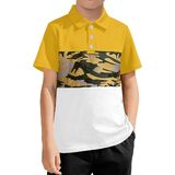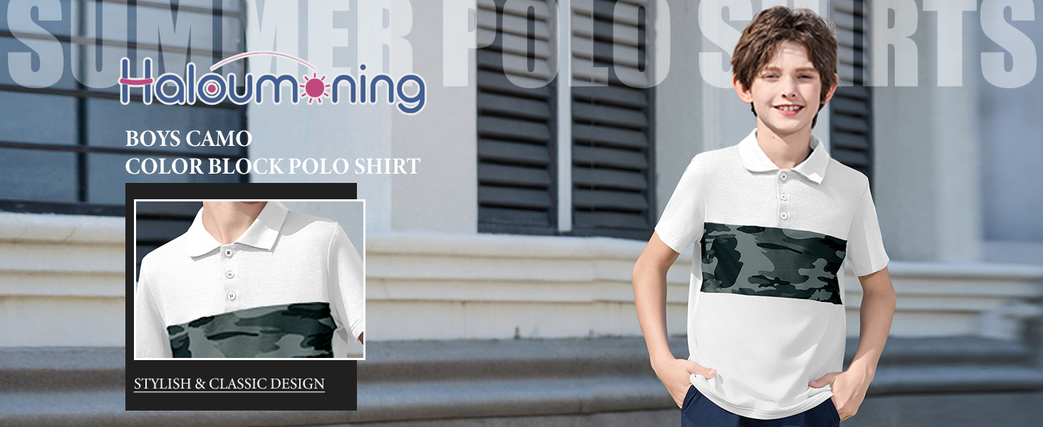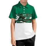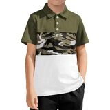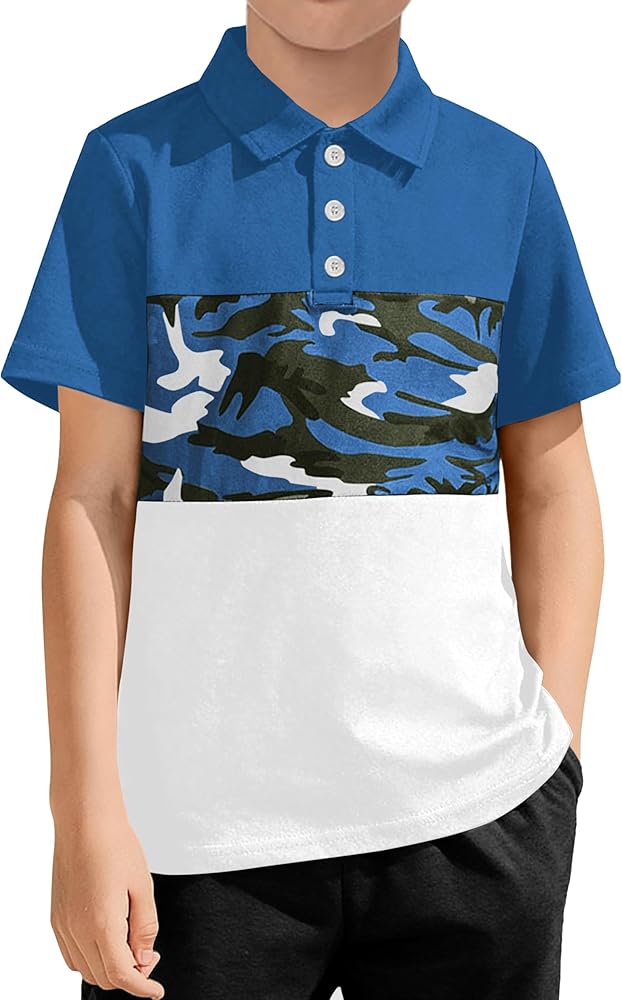Trendy Colorblock Camo Design: Featuring a chic camouflage colorblock pattern, this top combines streetwear edge with classic style. The polo collar and short-sleeve silhouette provide a timeless look, while the relaxed fit ensures ease of movement for active boys