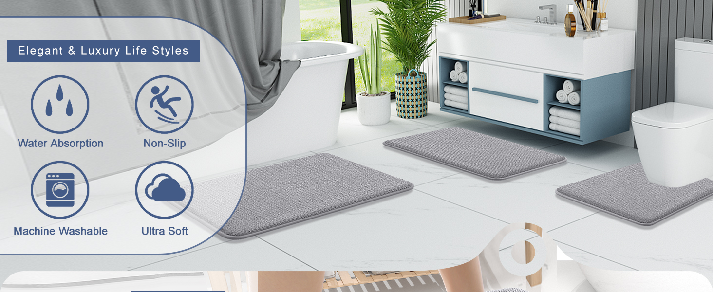 [Easy to Clean & Care] Our bathroom mats are machine washable. Simply place the mats in the washer using cold water on the gentle cycle. Do not use chlorine or bleach. Tumble dry on low heat or lay to air dry. The color of the bath mats will not fade.