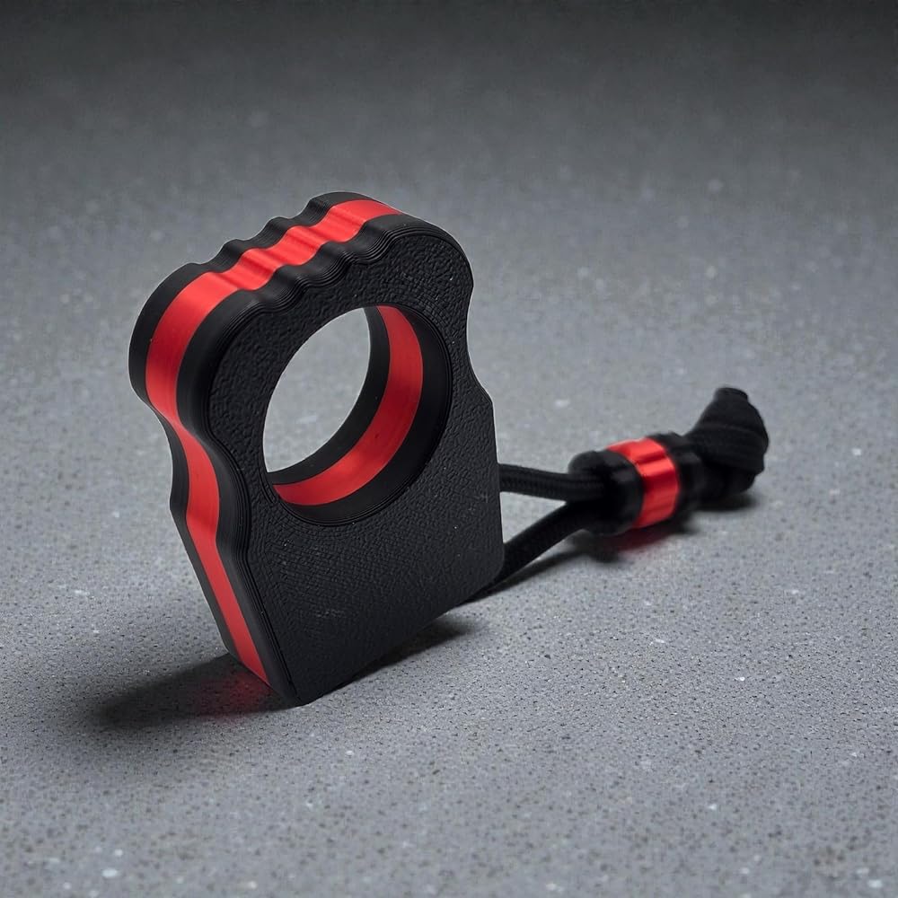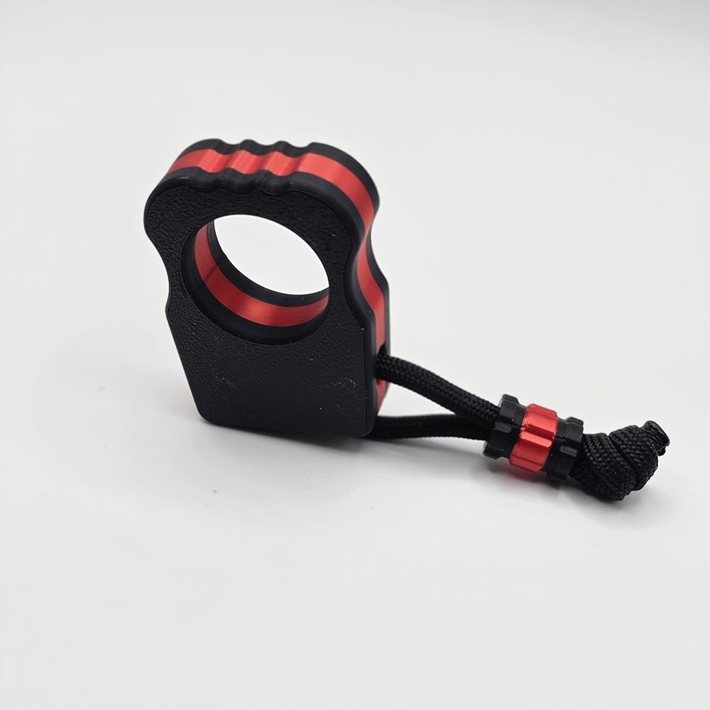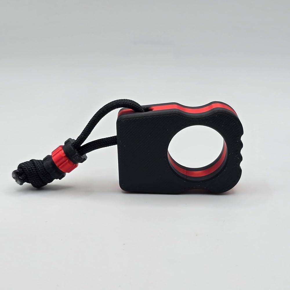 Elevate your everyday carry with this striking tactical knuckle keychain in bold black with luxurious metalic silk accents. This sleek, 3D-printed single-finger tool combines sophisticated style with practical functionality. Crafted from durable PLA plastic with a premium textured surface, the ergonomic design ensures a secure and comfortable grip. The aggressive angular shaping adds both visual appeal and confident handling capability. Measuring 2.0 x 1.5 x 0.5 inches, .9 inch finger hole, this standard-sized accessory features a rugged black paracord lanyard equipped with a matching accent bead for easy organization and quick access. Made in the US, this versatile EDC piece weighs just 1/2 ounce, making it an ideal lightweight addition to your daily gear. The textured matte black finish contrasts beautifully with the metallic accents, creating a sophisticated aesthetic that stands out. Perfect for key organization and everyday utility, this tactical knuckle keychain seamlessly blends form and function in a compelling package.