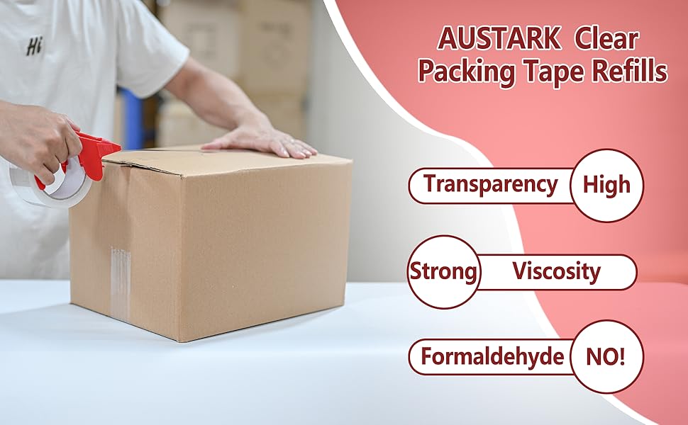 TAPE DISPENSER: Easy to use the tape with the included packing tape dispenser