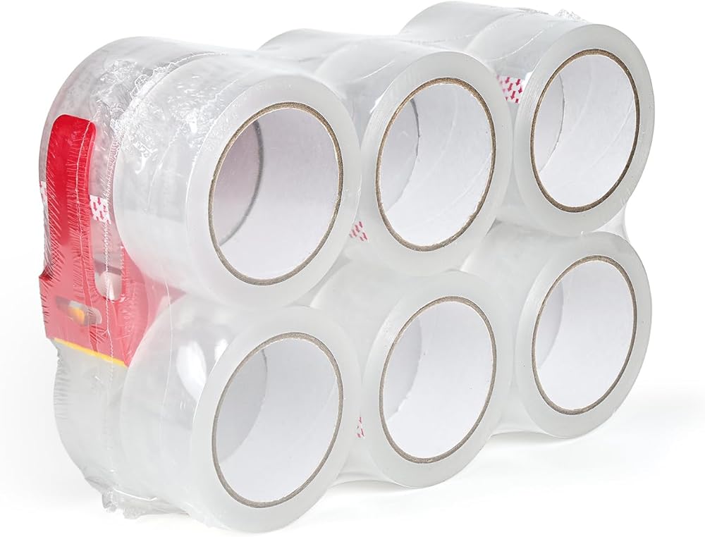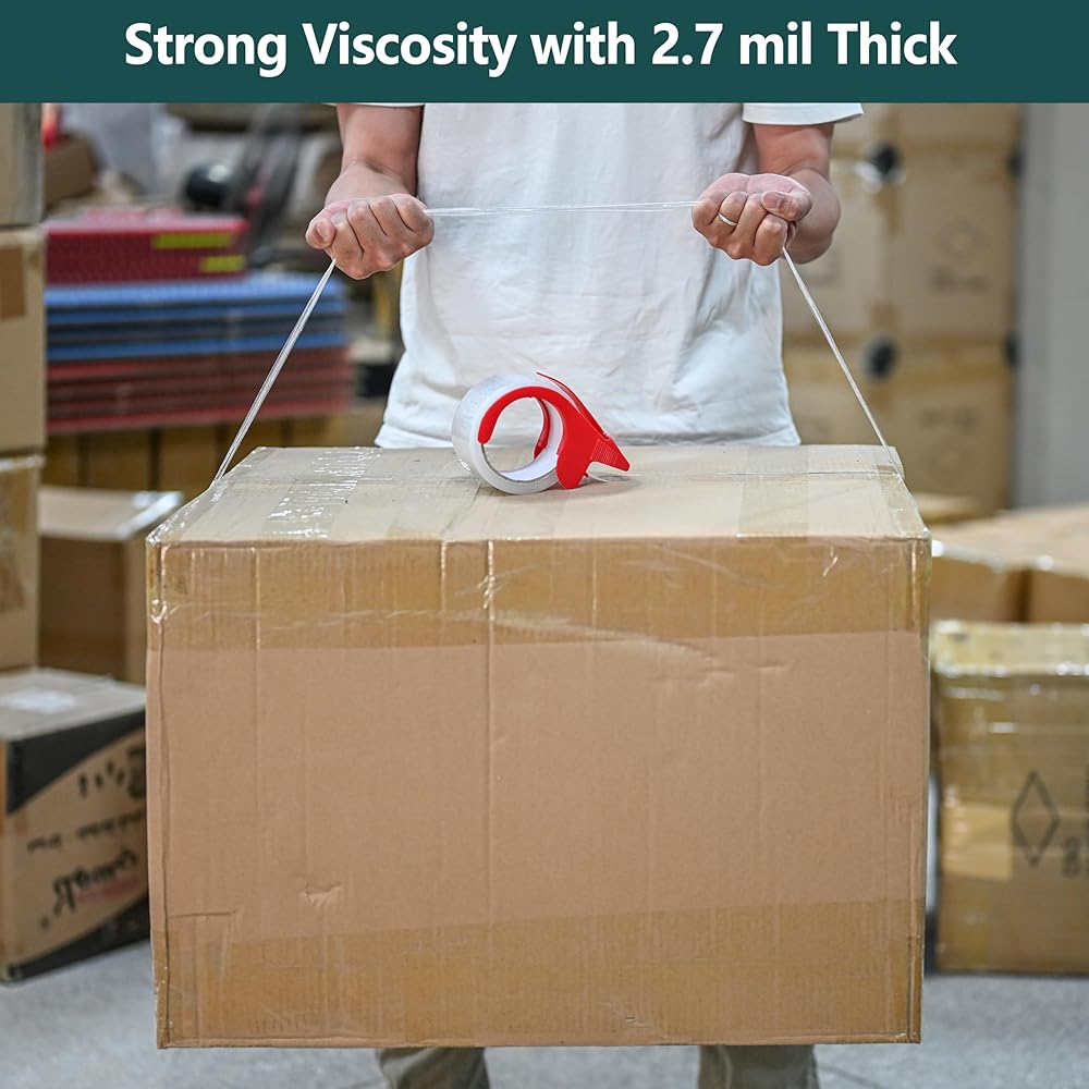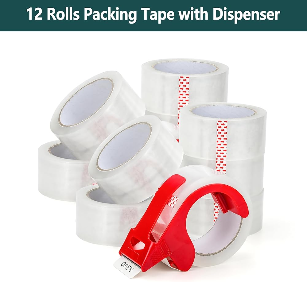 PACKING TAPY: Comes with 12 rolls and a tape dispenser, 1.88 inch x 60 yards each roll, total 720 yards. Great size to hold for taping up boxes in office, warehouse and home