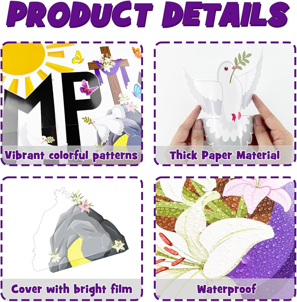 Instant Reverent & Uplifting Easter Atmosphere: The Empty Tomb theme and vibrant high-definition designs instantly create a peaceful, hopeful, and respectful environment. Whether for Sunday school, church hallways, libraries, or Christian classrooms, this set brings the joy of resurrection to any space, touching the hearts of students, teachers, church members, and visitors