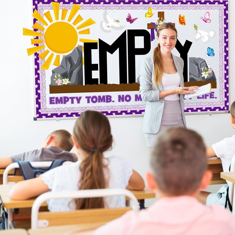 Versatile Religious Decor Beyond Bulletin Boards: This Easter religious classroom decoration set works far more than just bulletin boards! Use the empty tomb, cross, and butterfly cutouts for Easter crafts, photo backdrops, window displays, church events, and home decor. Adapt them to your unique style and share the uplifting message of "EMPTY TOMB. NO MORE EMPTY LIFE" all spring long