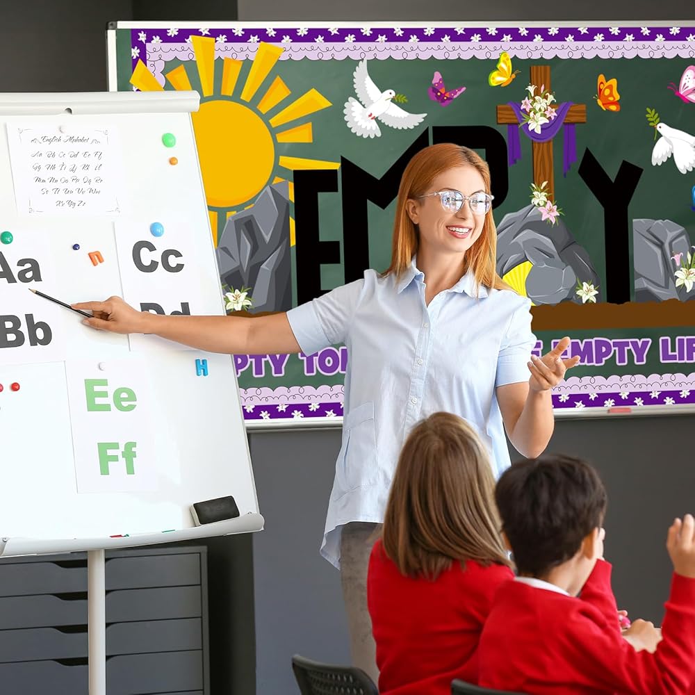 Heavy-Duty Teacher & Church-Grade Quality: Made from premium thick cardstock with double-sided lamination, these Easter christian bulletin board decorations are tear-resistant, waterproof, and reusable. No more flimsy, single-use decor—simply wipe clean and store for next year. Durable enough for classrooms, churches, and high-traffic areas, making it a long-lasting spiritual decoration for every Easter season