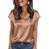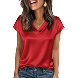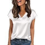 Women Silk Satin Tops Cap Short Sleeve Blouse V Neck Shirts Business OL Work Shirt Casual Going Out Outfits