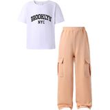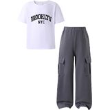 【DESIGN】Boys clothes outfits paired with letter print Crew Neck Short Sleeve & Stitching Cargo Pocket Pants, Great for vacation and travel in spring and summer.