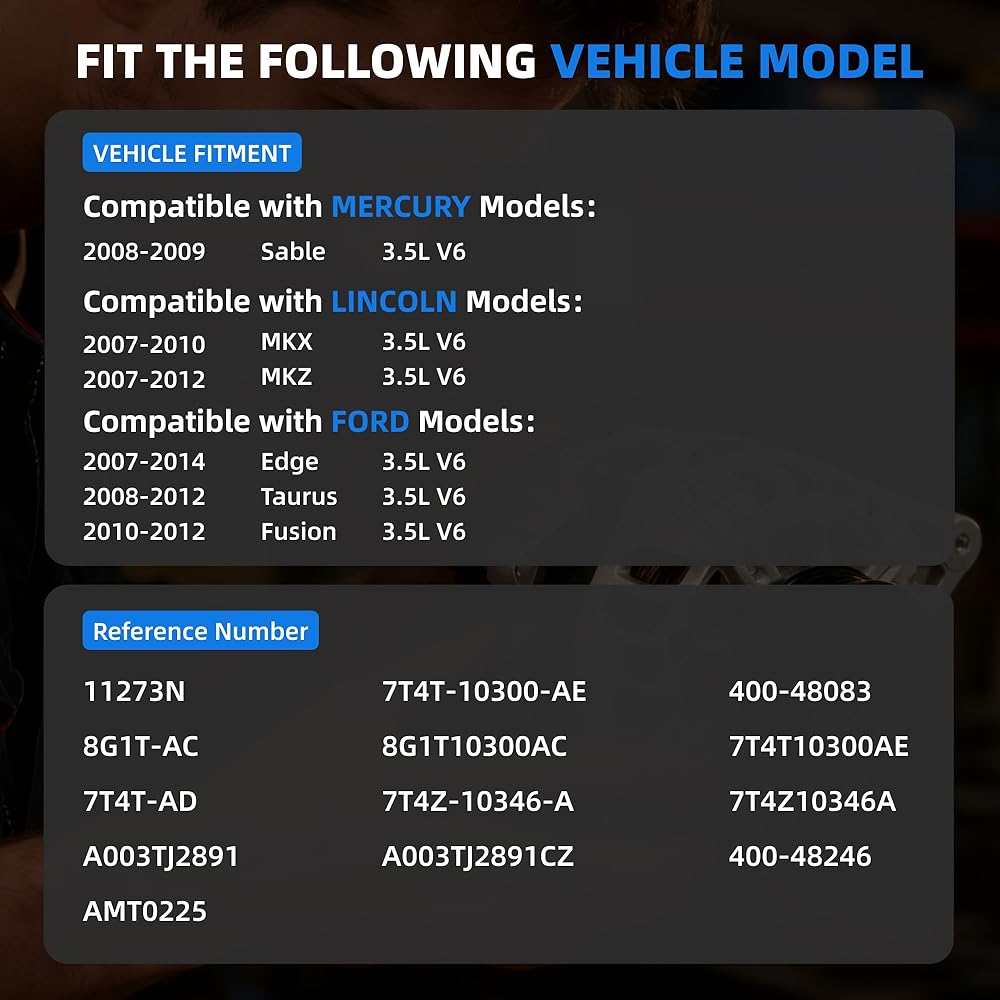 【Durability & Reliability】: Manufactured with high-quality materials and subjected to rigorous no-load, load, and full-quality testing. Designed specifically compatible with 2008-2009 Mercury Sable 3.5L V6,2007-2010 Lincoln MKX 3.5L V6,2007-2012 Lincoln MKZ 3.5L V6,2007-2014 Ford Edge 3.5L V6,2008-2012 Ford Taurus 3.5L V6,2010-2012 Ford Fusion 3.5L V6. Verify your vehicle details and part number for a perfect, hassle-free fitment