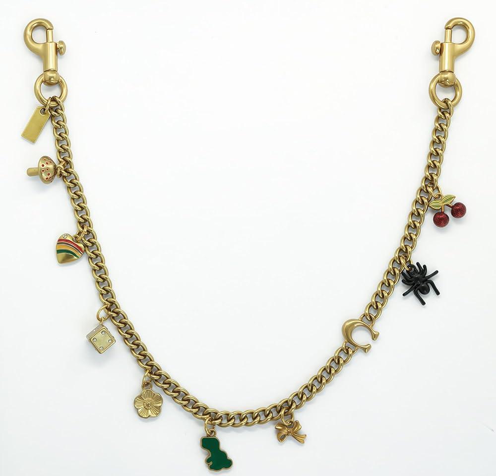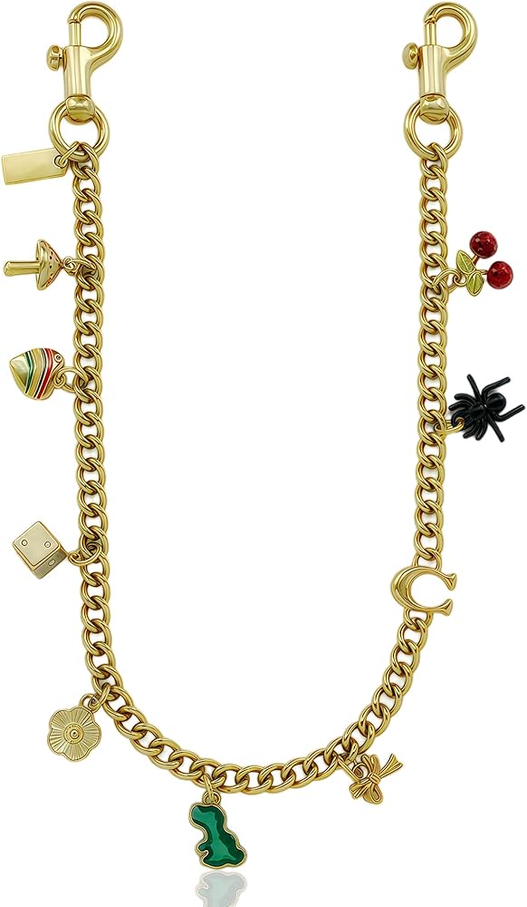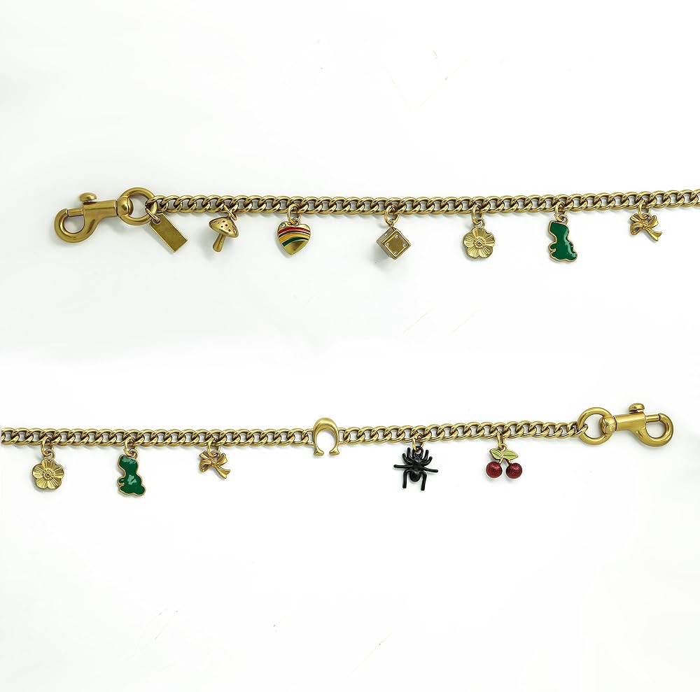 【Unique & Fashion Design Bag Charm Chain】 Upgrade your accessories with this eye-catching bag charm chain! Featuring with playful 9 small pendants like cherries, stylish letter C, camellias, dinosaurs, hearts, mushroom, dice, spider, and bowknot. it delivers a modern and edgy vibe. Whether used as a purse chain charm for handbags or a stylish wallet chain charm, the vibrant silver finish ensures your style stands out.