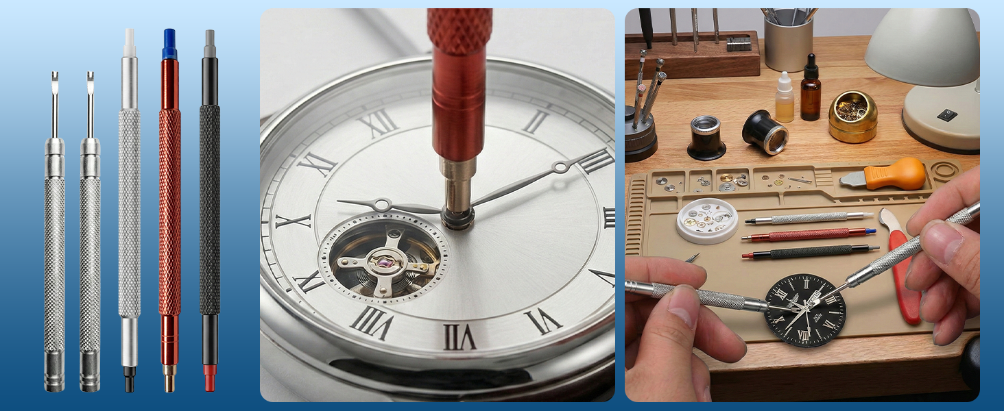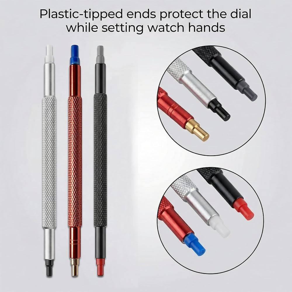 Precision Watch Hand Alignment: High-carbon stainless steel tips deliver pinpoint accuracy for installing hour, minute, and second hands; ergonomic knurled handles ensure a steady grip for delicate movement adjustments