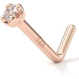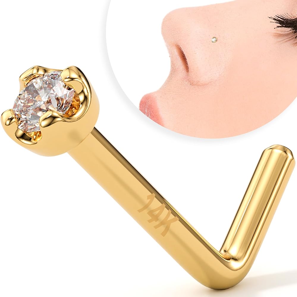 14K Solid Gold Nose Ring Studs - 1.5mm (0.015 cttw) Genuine Diamond L Shaped 20 Gauge 1/4" Real Gold Nose Ring Piercing Jewelry - 14 K Gold Nose Stud, Nose Piercings, Gold Nose Studs for Women, Men