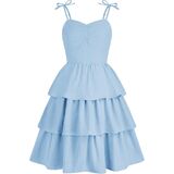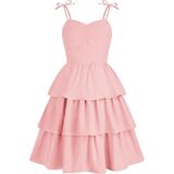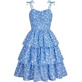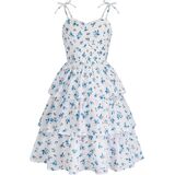 Design: This girls summer dress features adjustable bowknot shoulder straps, sweetheart neck, ruched bust, smocked back, high waist, three tiered layer ruffle hem, a line, knee Length. Girly and stylish.