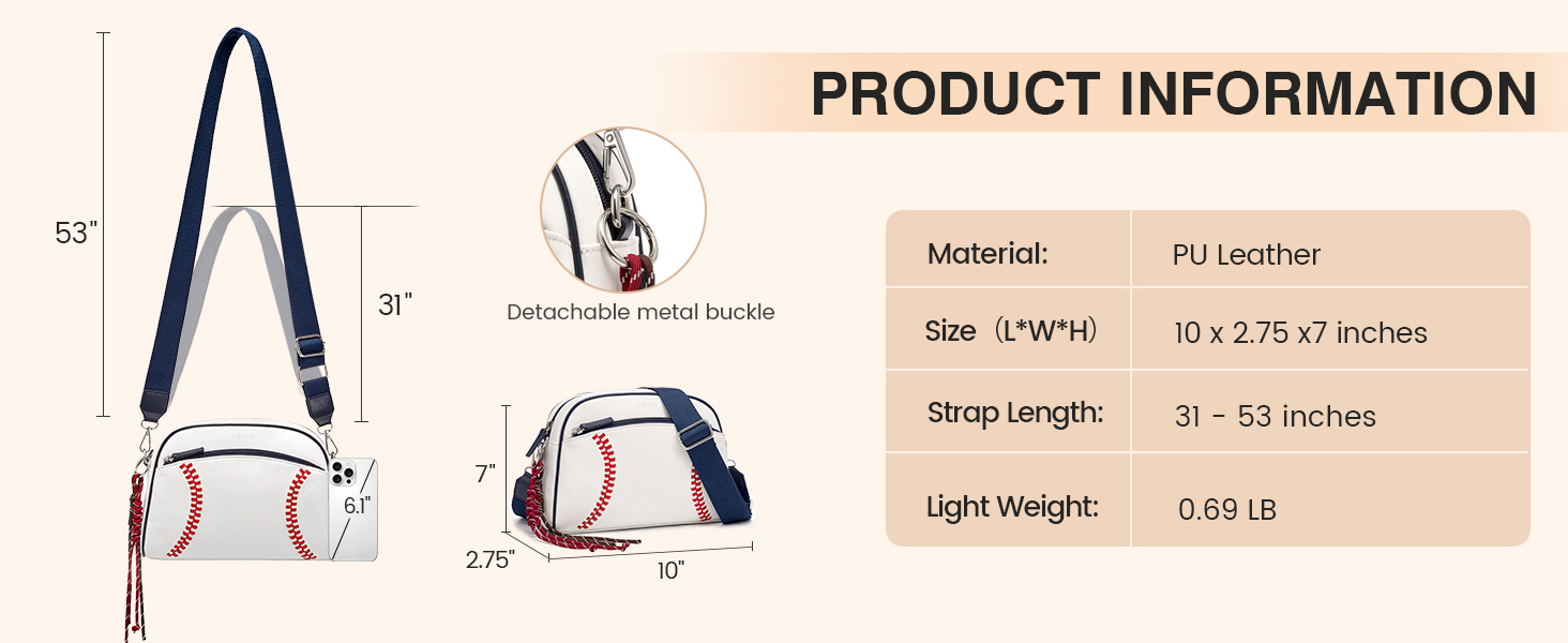 Spacious room: This women's baseball crossbody bag measures 10 x 2.75 x 7 inches and weighs 0.69 pounds, offering ample space for all your daily essentials when heading out