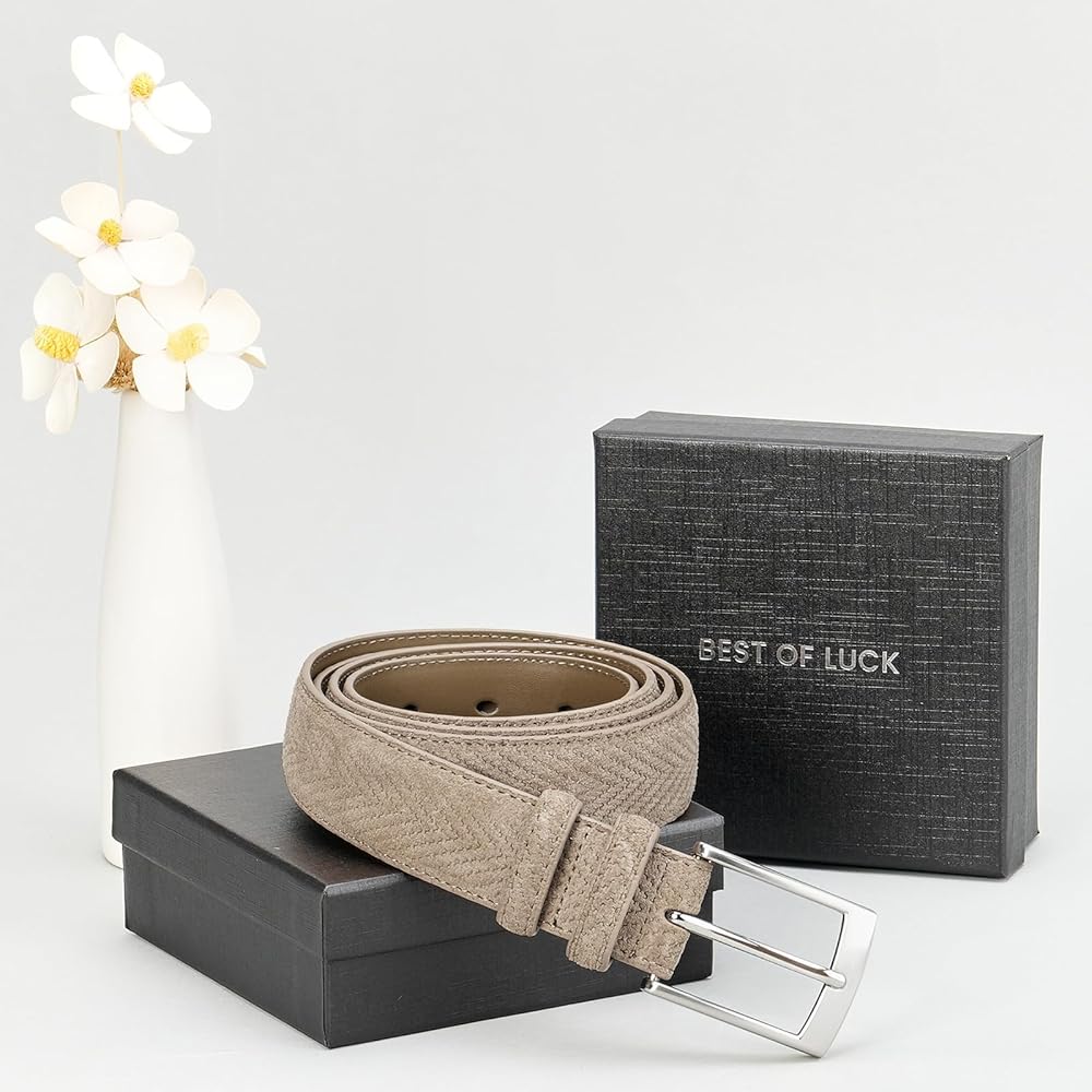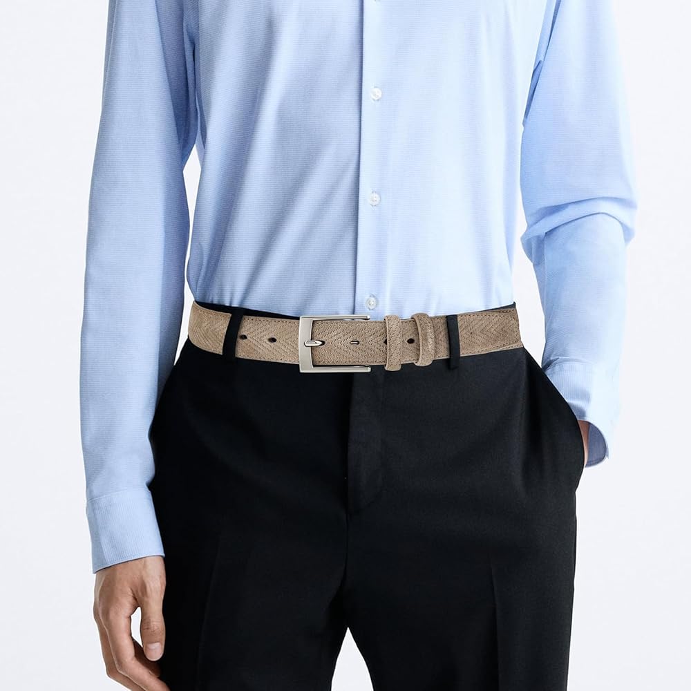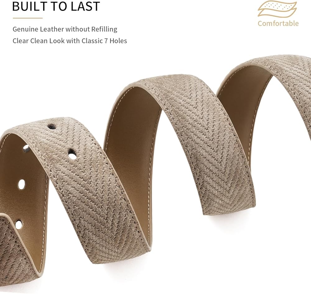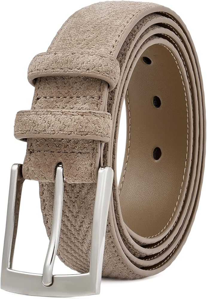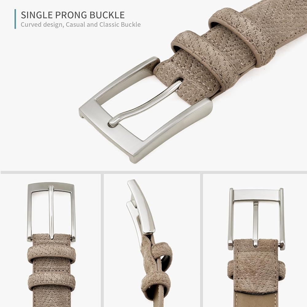 Premium Construction: This suede leather belt offers a soft, textured look and lasting durability. The anti-corrosion single-prong buckle ensures reliable performance for daily wear