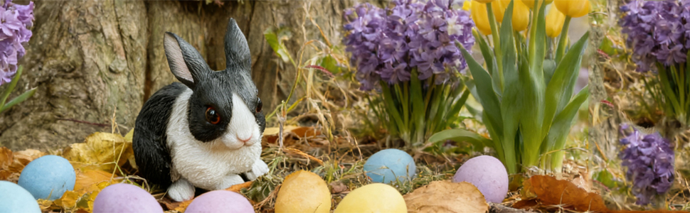Versatile Indoor/Outdoor Display Options: Crafted from durable weather-resistant resin with UV-protective coating, this decorative bunny maintains its crisp black and white contrast in various environments. Use it confidently as outdoor Easter decor on your patio or porch, or bring it inside as year-round home accent decor for shelves and tabletops.