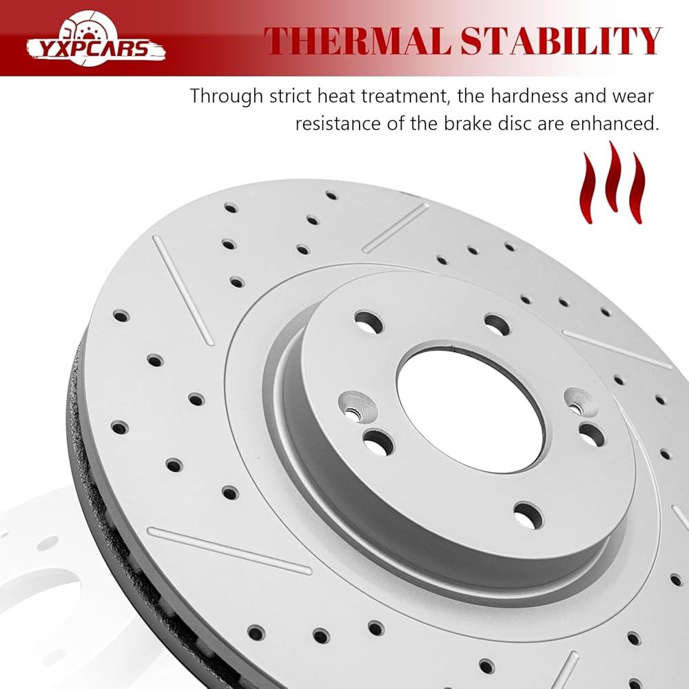 YXPCARS Automotive Replacement Disc Brake Kits--Front Brakes Pad and Drilled Slotted Vented Rotors