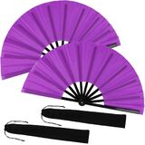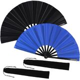 2 Pack Large Folding Hand Fan for Line Dance, Men/Women Rave Hand Fan, Clack Popping Fans for Boots On The Ground Dance, EDM, Wedding, Party (Black) in Kuwait