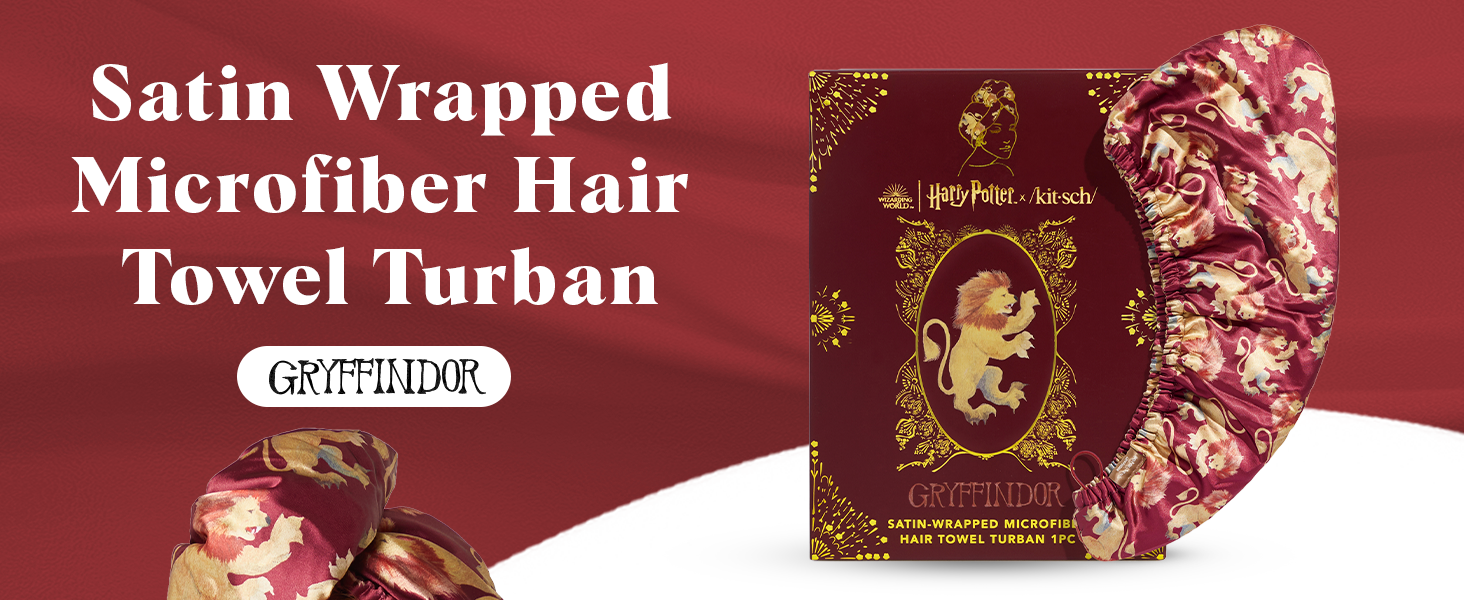EXPERIENCE THE MAGIC - Enjoy smooth, frizz-free hair with this quick-drying towel, and proudly rep your House—whether you're Hufflepuff or Ravenclaw! Step into the wizarding world with the Harry Potter x Kitsch Satin Wrapped Microfiber Hair Towel Wrap, featuring Gryffindor's iconic lion crest.