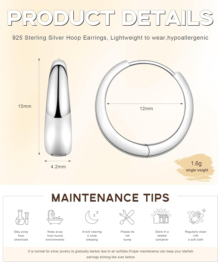 Premium S925 Sterling Silver: Crafted from pure S925 sterling silver, hypoallergenic and nickel-free, perfect for sensitive ears. Resistant to tarnish for long-lasting shine.