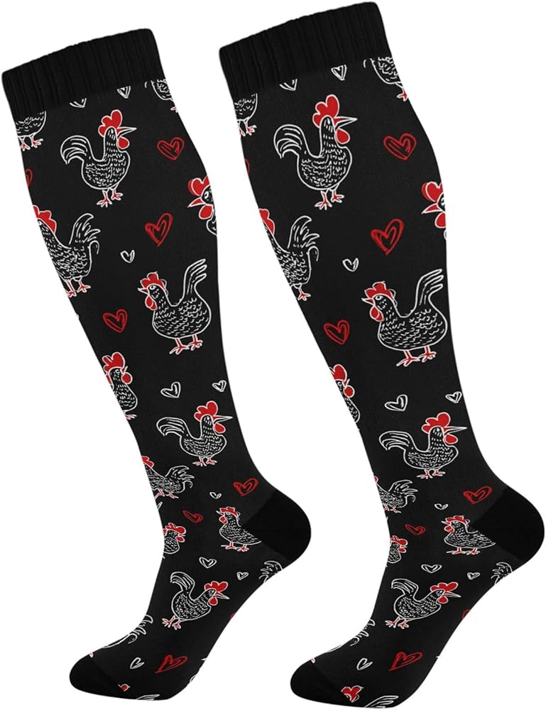 Wusikd Heart Roosters Compression Socks for Women and Men Circulation Cute Long Socks for Athletic Running 1 in Kuwait