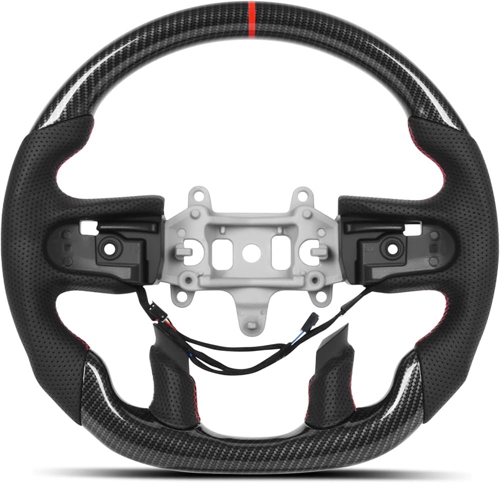 Piano Black Steering Wheel for Dodge Ram 1500 2500 3500 2013-2018, & 1500 Classic 2019-2024, Gloss Black Flat Bottom Perforated Leather, Stealth Black Stitching No Stripe