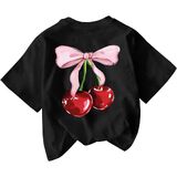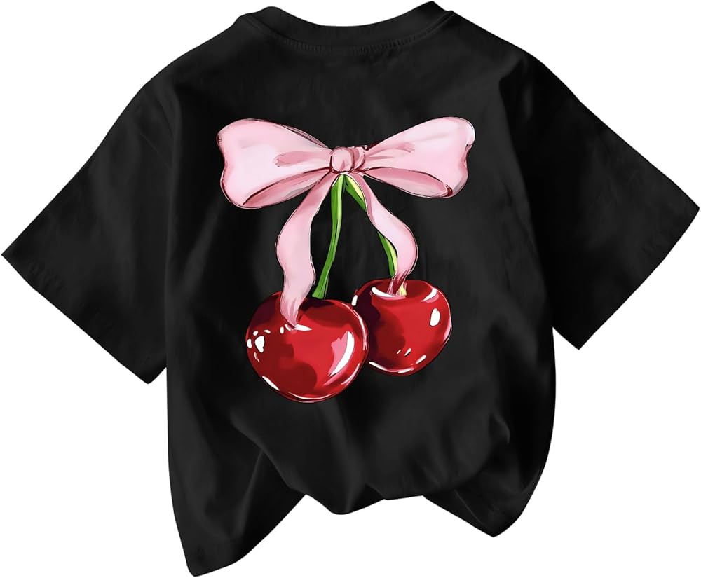 Features: Trendy girls graphic tees, bow cherry print, short sleeve, round neck, regular fit, cute tops for women, graphic tshirts for girls, fairycore clothes, preppy tops for women, make you stand out in the crowd
