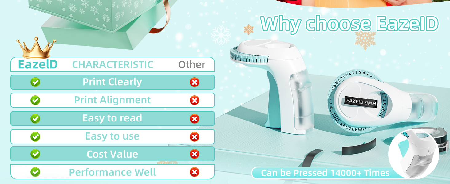 Home Ofiice School Organizer : EazeID embossing label maker is perfect for home storage, office file organization, school supplies, kitchen items, and DIY crafting projects. Great for scrapbooks, photo albums, storage boxes, and classroom organization. This vintage embossing christmas label maker makes thoughtful gift for christmas, cool personalized teacher gifts for classroom, organization gifts for women, bulk office gifts, work from home gifts, customized gifts for kids, practical gifts for organized people. Complete package includes 3 rolls of premium tapes