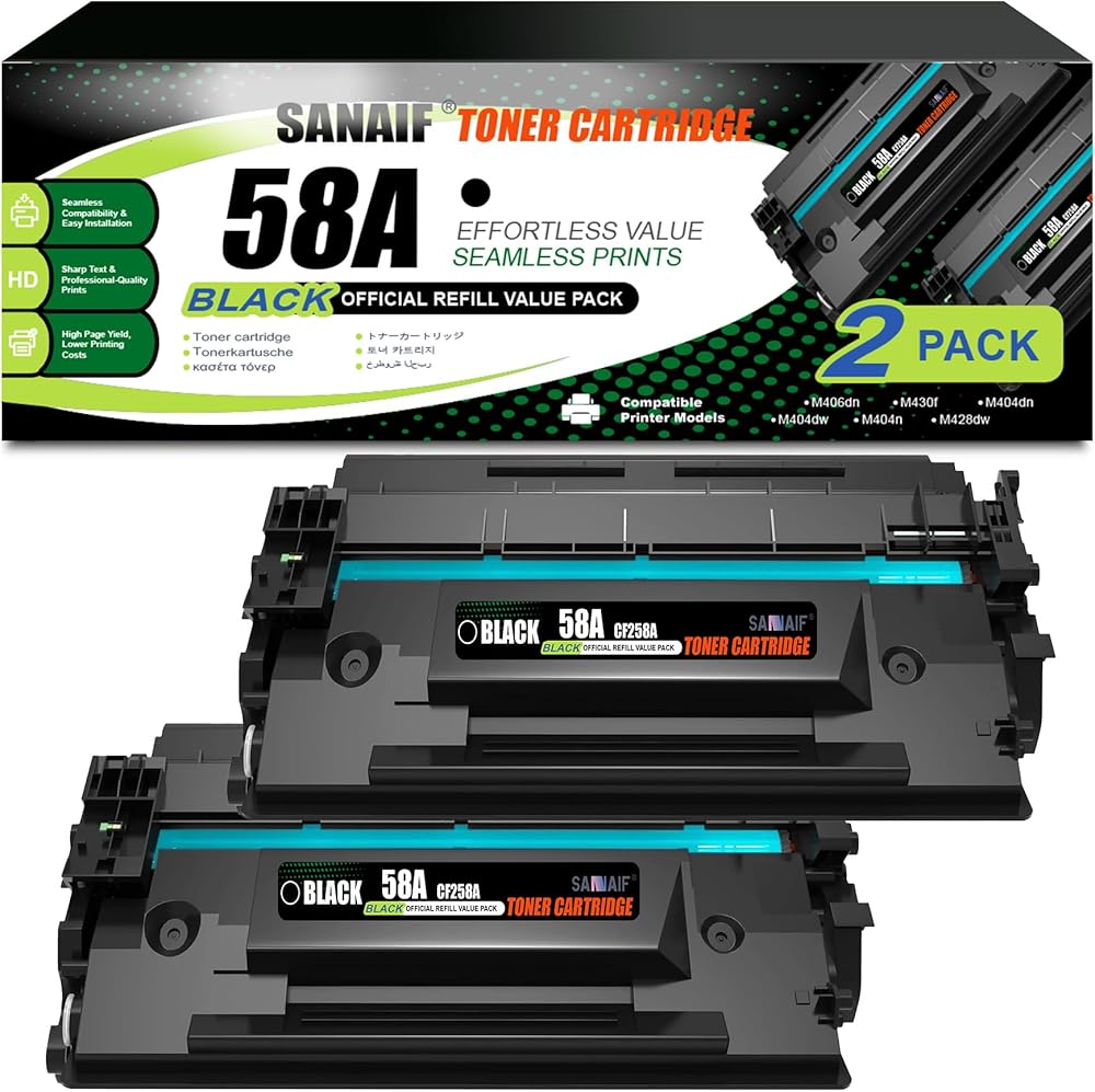 Compatible for Printer With Chip: 58A CF258A toner set for LaserJ Enterprise M406dn; LaserJ Enterprise MFP M430f; LaserJ Pro M404dn, M404dw, M404n; LaserJ Pro MFP M428dw, M428fdn, M428fdw Printer.