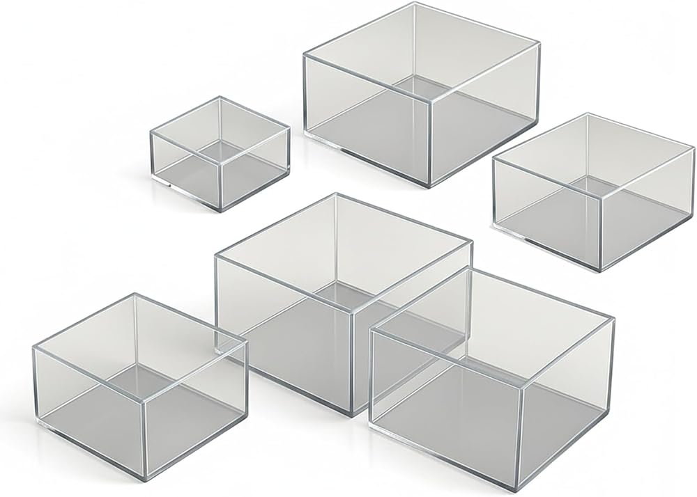 Enhance your dessert table presentation with this premium set of 6Pcs Clear Acrylic Boxes for Display—beautifully crafted acrylic nesting risers that transform any buffet into a visually stunning showcase. Ideal as food risers for buffet table parties, these cube boxes are perfect for displaying cupcakes, candy, chocolates, pastries, and more. Each display stand is made from high-clarity, scratch-resistant acrylic for a crystal-clear finish that highlights your treats in the best light. The innovative hollow bottom design allows seamless integration with decorative elements like lights, fabric, or flowers, giving you endless styling possibilities. Whether you're hosting a wedding, birthday, baby shower, or holiday gathering, this set of 6 acrylic display risers delivers elegance, functionality, and convenience. Their nesting design ensures compact storage, while their modern silhouette adds sophistication to any setting. Create unforgettable presentations with this must-have display risers set—your ultimate solution for professional-quality dessert displays at home or on the go.