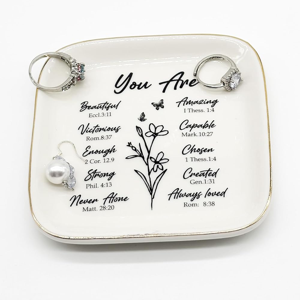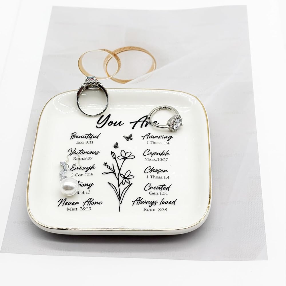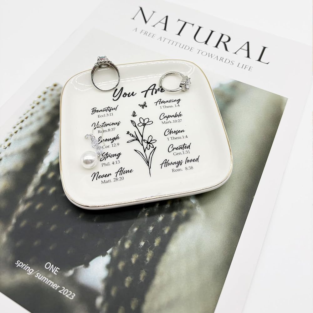 Bible Verse Ceramic Jewelry Dish, Small Ring Dish Jewelry Tray Confirmation Gifts for Girls Mom Daughter, Ring Holder Jewelry Plate Nightstand Trinket Tray Religious Christian Gift for Women