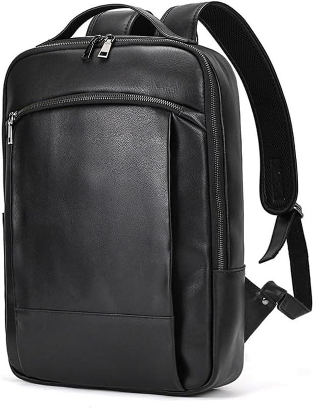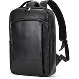 [Classic Black Leather] This genuine leather backpack features a single layer black classic design made from durable leather that offers a timeless and professional look for business casual and travel settings