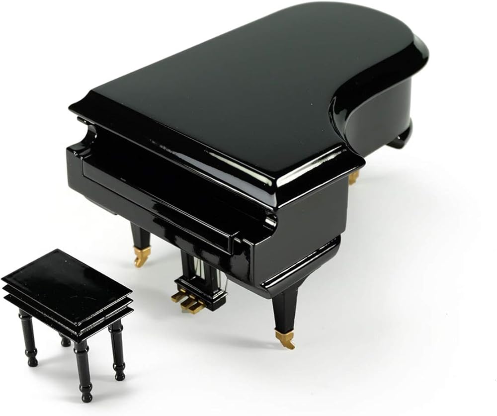 • CLASSICAL MINIATURE GRAND PIANO MUSIC BOX: Experience the charm of a classical miniature grand piano music box, expertly crafted with a sleek, high-gloss black finish. This elegant piece adds a touch of timeless appeal to any space and makes a perfect addition to dollhouse furniture or miniature.