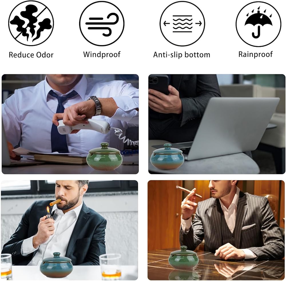 The ashtray has a windproof design, which means that it can be used outdoors without worrying about the wind blowing the ashes away.