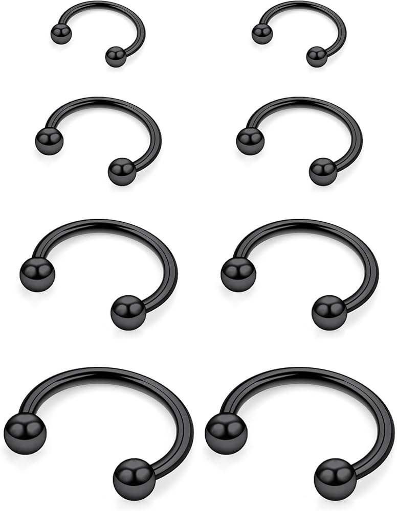 【Multiple Uses】: Surgical steel horseshoe circular barbell used as septum ring, septum jewelry, septum nose ring piercing jewelry, horseshoe earrings, ear piercing, tragus earring hoop, helix hoop piercing, daith earrings hoop, cartilage hoop earring, rook piercing hoop earrings, lip rings hoop, snake bite piercing jewelry hoop and other body piercing jewelry for women men
