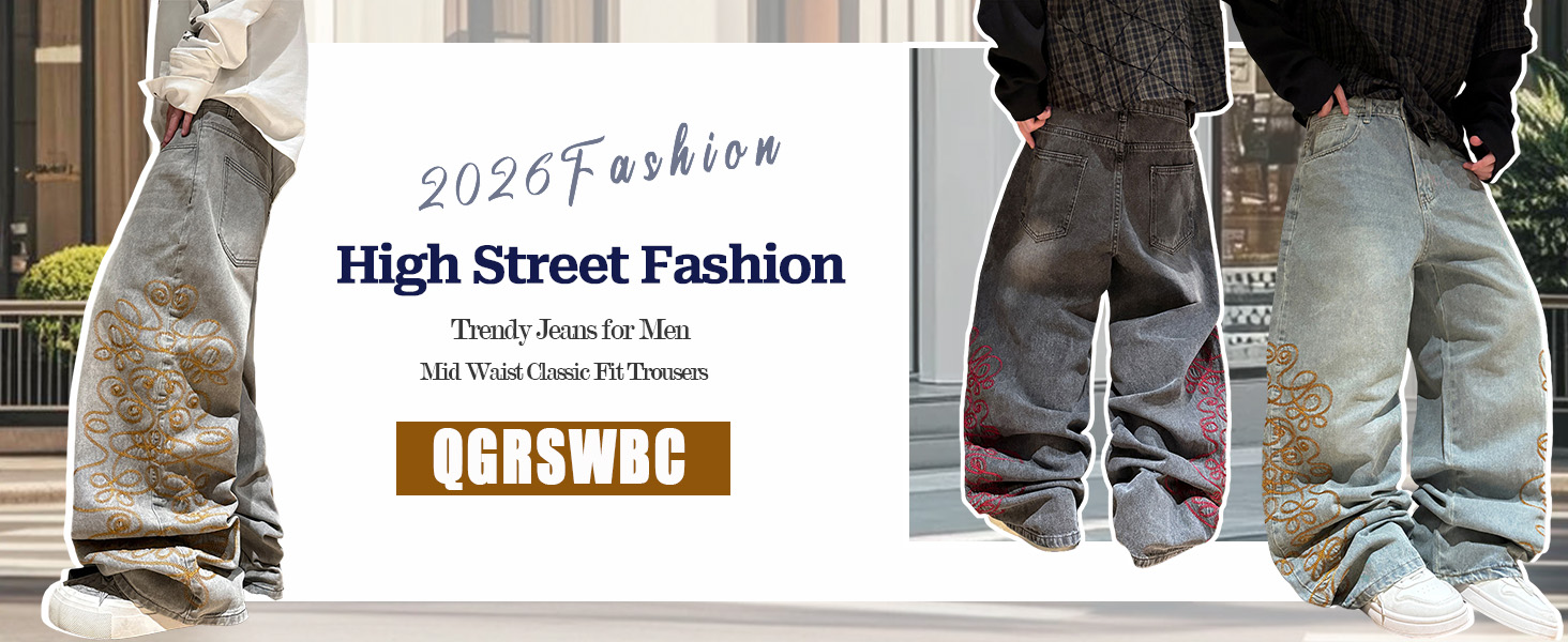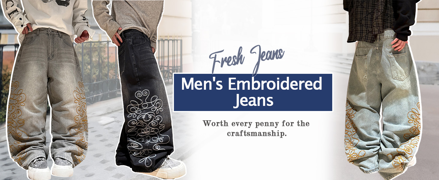 【Distinctive Design & Durability】Embrace a unique blend of street-style and tradition with our embroidered men's wide-leg jeans. Featuring a relaxed mid-rise waist and a comfortable wide-leg silhouette, they offer unparalleled freedom of movement. Built with five classic pockets for utility and detailed with premium embroidery for a standout look, these jeans are crafted from robust fabric to ensure lasting quality and timeless style season after season.