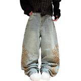 【 Versatile Styling for Everyone】These embroidered loose fit jeans are a versatile staple for any wardrobe, suited for various body types. The flattering cut offers a modern, streamlined appearance. Easily dress them up with a crisp button-down shirt and boots for a smart-casual look, or keep it cool with a simple graphic tee and sneakers. Their unique embroidery adds a personalized touch that makes your outfit effortlessly stylish for multiple occasions.