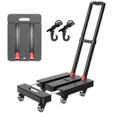 Folding Hand Truck, 500 LBS Heavy Duty Foldable Dolly Cart with Wheels, Telescoping Handle & 2 Elastic Ropes, Portable Luggage Cart for Moving, Travel, Home, Black Red