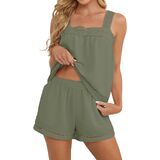 Super Soft Cute Pajama Sets! Bloggerlove Lace Tank top shorts Pj set is made of Lightweight soft polyester fabric, it's comfortable and breathable for all-night comfort!