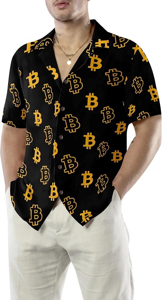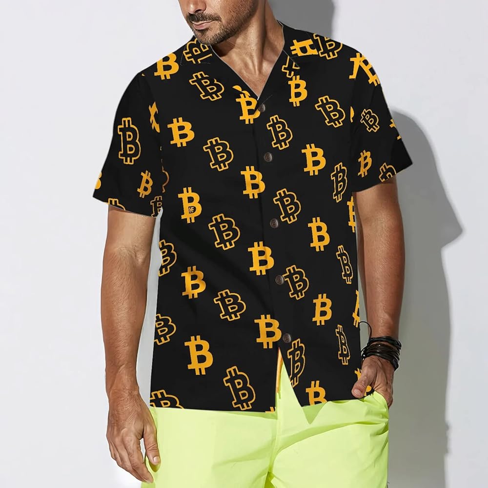 Product Details: Our bitcoin crypto shirts come in a regular fit, with short sleeves, button-down closure, and a fantastic horizontal stretch to help you stay chic on the move. Wonderful beach shirts for men on vacations, summer holidays, and out-of-office activities.