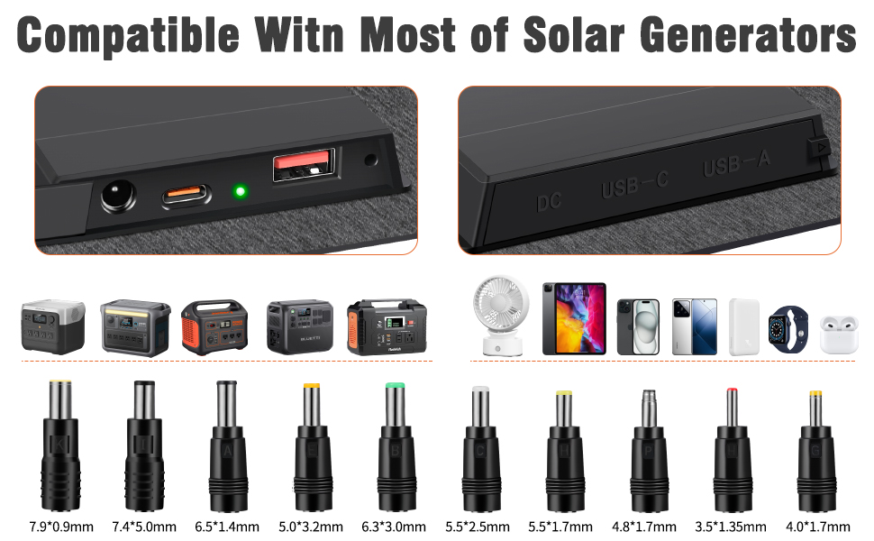 【Package and Support】You will receive SOKIOVOLA 30W Foldable Solar Panel Charger x1, Mountaineering buckle x3,39.37 inches DC5521 to DC 5521 Connect x1,10 Adapters x1,User's Guide x1, We also provide 12 months warranty from the date of purchase to ensure that you receive prompt support and repair services during use. Note: Any cloud cover or obstacles will affect the charging speed. If you encounter any product problems, please feel free to contact us, we will reply within 12 hours.