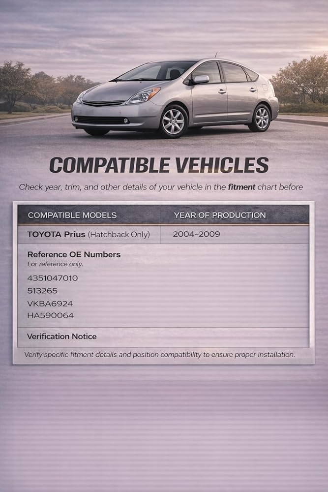 [Vehicle Fitment] - Fir for Prius 1.5L 2004 2005 2006 2007 2008 2009 Hatchback --- Front Side
