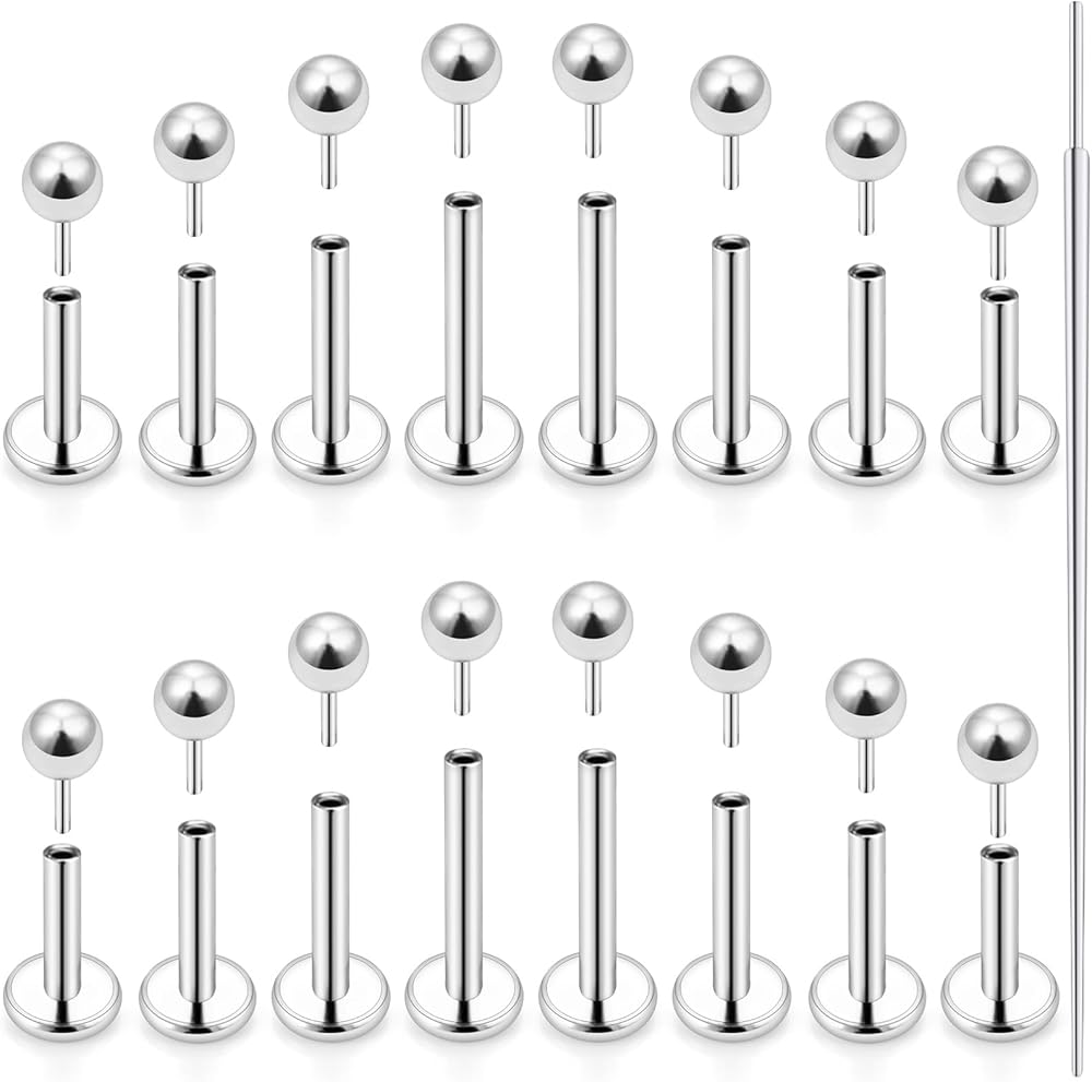 MEASUREMENTS--Lip Rings Studs Gauge Size: 18G (1.0mm); Straight Bar Length: 6mm(1/4 Inch), 7mm(1/4 Inch), 8mm(5/16 Inch), 10mm(3/8 Inch),Balls Size: 3mm, The Different Sizes Made It Easy to Find the Right One for You. Color: Silver-tone.