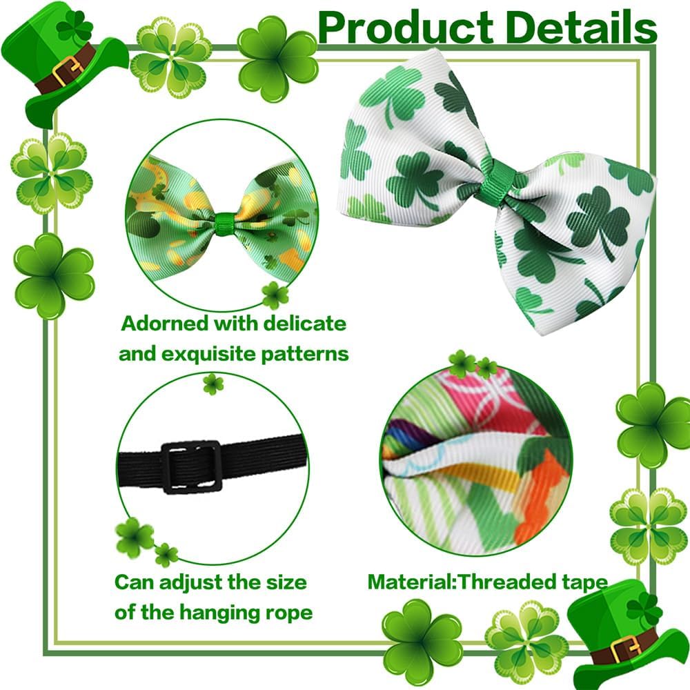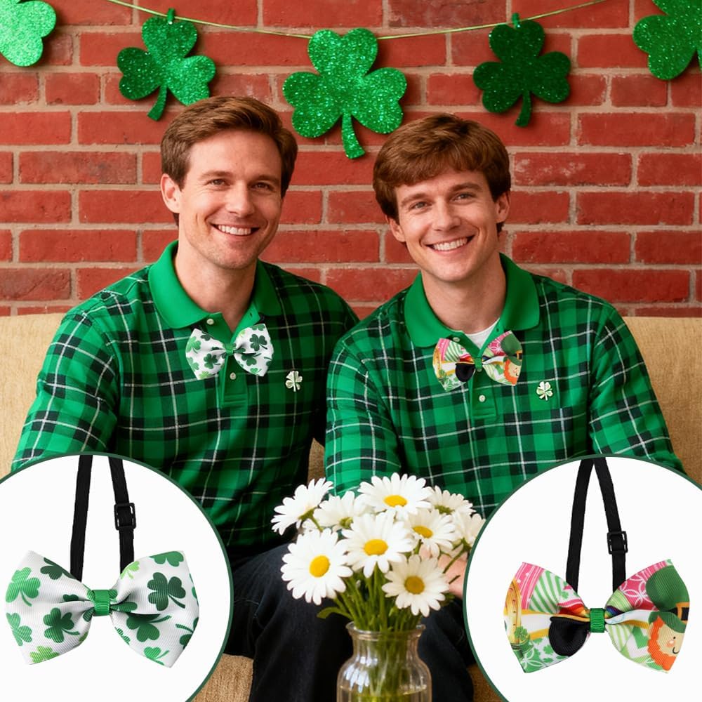 Add a playful touch of green to your wardrobe with this festive bow tie designed for St. Patrick's Day, Easter, and holiday celebrations. Crafted from soft threaded tape, this bow tie feels comfortable and lightweight for long-lasting wear. Its vibrant green color and clover leaf pattern make it the perfect accessory to stand out in any crowd. Pre-tied and easy to adjust, it features a ready-made knot and an adjustable strap that fits most neck sizes with ease. Whether you're attending a banquet, party, or just having fun with friends, this bow tie slips on quickly and stays securely in place throughout the day. Its unisex design suits both men and women, offering a touch of elegance and festive spirit to your outfit. Dress up your look effortlessly and keep the focus on fun, fashion, and celebration.