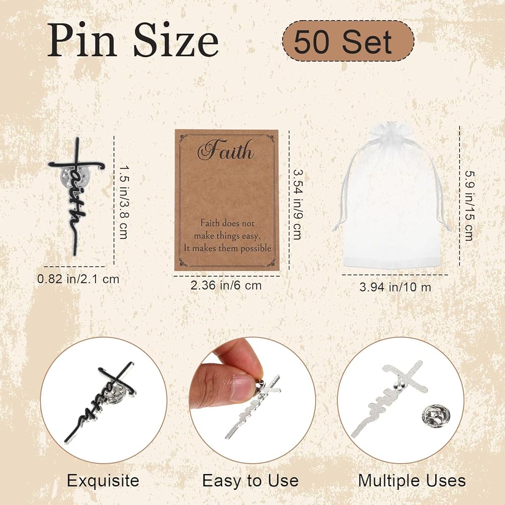 Our 50-piece Christian cross pin set blends faith and practicality. As christian cross lapel pins for men, the durable metal construction ensures long-lasting wear, while the inspirational cards add emotional depth.