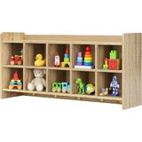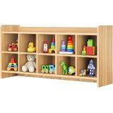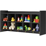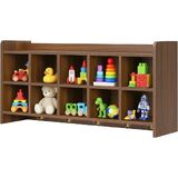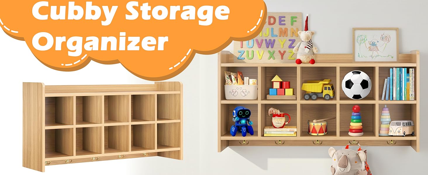 【10 Open Cubby Compartments】Featuring 10 evenly sized compartments and 5 hooks, this storage shelf makes it easy to sort and display toys, books, storage bins, snacks, and decorative items. The open cubby layout keeps everything visible at a glance, helping encourage tidy habits and quick cleanup.
