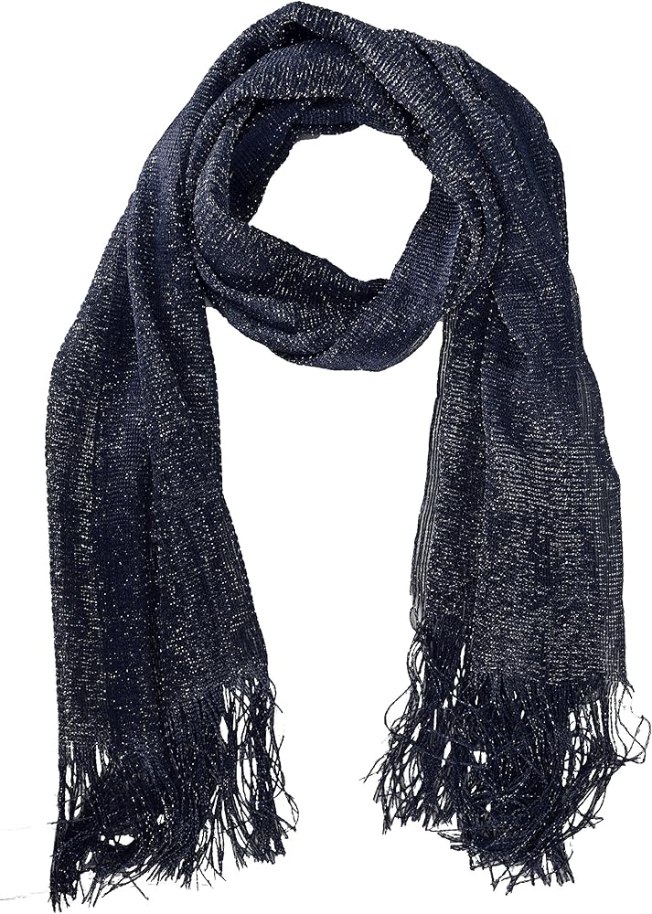 New by Peach Couture (A Registered Trademark). Sparkle and Shine all summer long with these glamorous glitter scarves. The fringe on the ends is fun and flowing great for the cool summer breeze. The new peach Couture Metallic Shimmer Scarf is ageless and very versatile. It gleams in any light thanks to the stitching detail of this fine polyester material. It is extremely light weight and sheer for the summer heat. Get it for yourself for a casual style with a pair of jeans, for an evening stroll, dressed up for a summer wedding, or get one for a young girl to play princess or start them off early as a young fashionista. Whatever the age or the occasion this scarf is sure to add a touch of style.