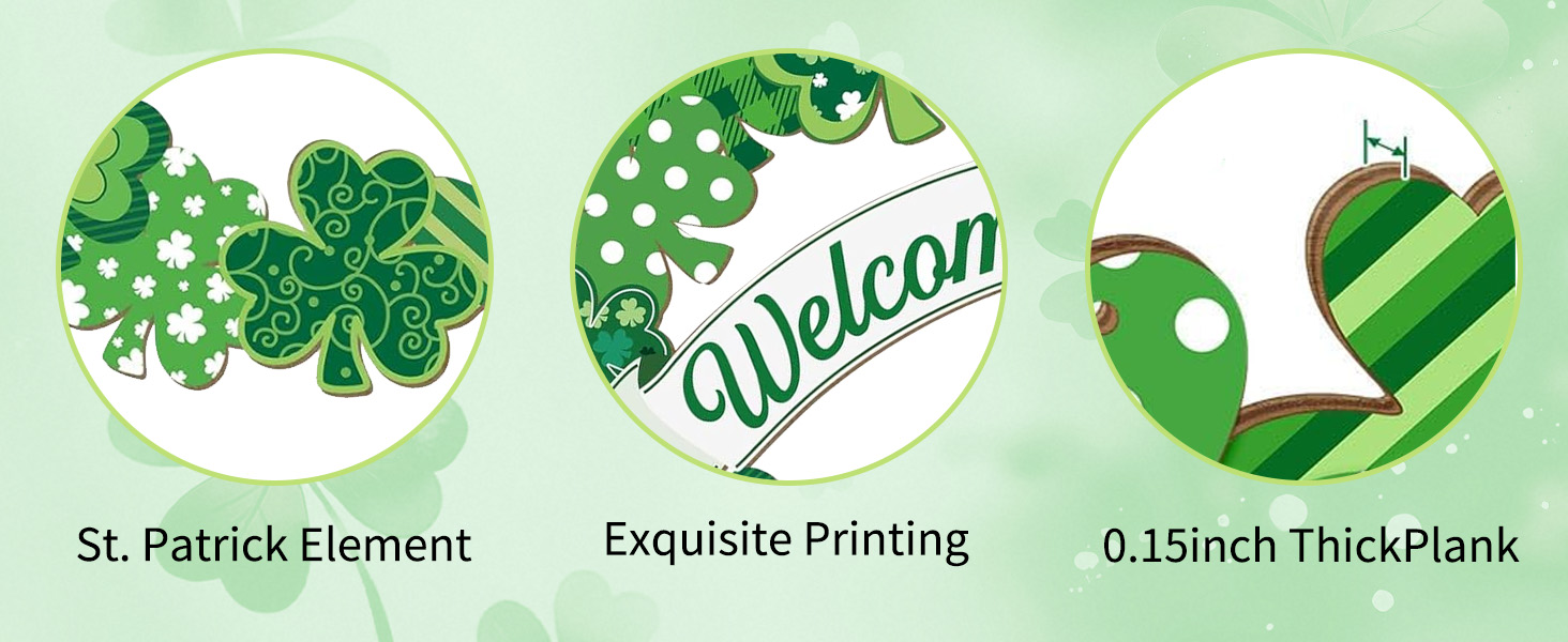 🍀Reasonable Size: the St. Patrick's Day welcome signs for front door are about 29 x 30 cm/ 11.4 x11.8 inches and 0.15 inch in thickness. With circular and welcome word design, as well as shamrocks patterns, embrace the spirit of St. Patrick's Day with this charming St Patrick's Day decorations.