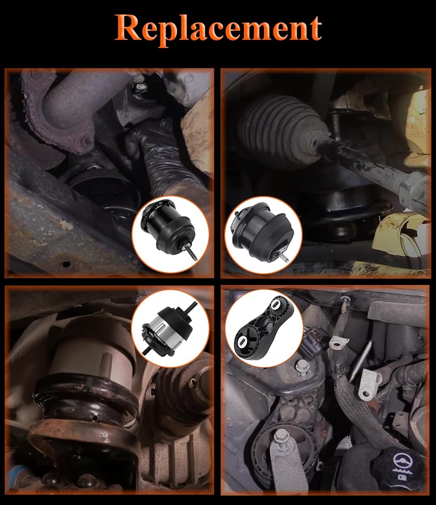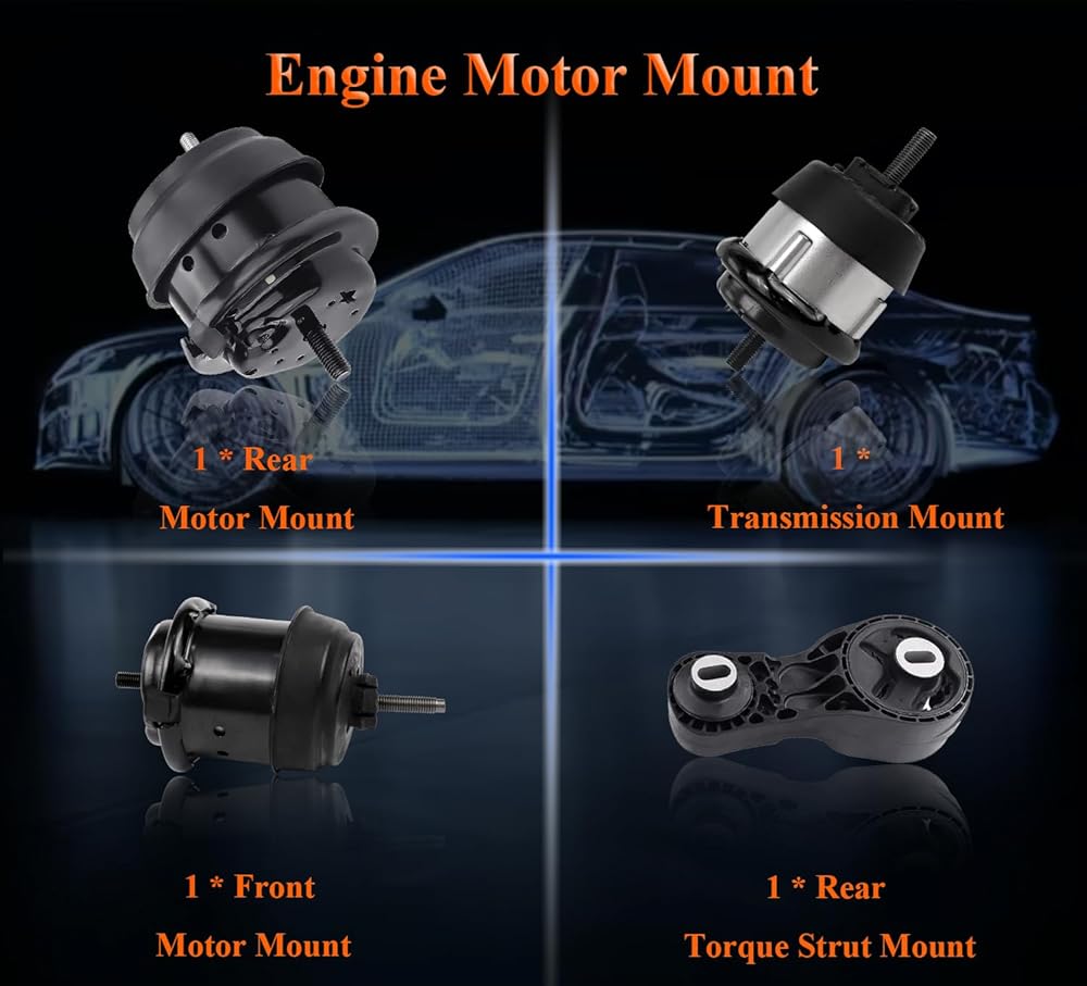 【Superior Durability】All our 4Pcs Engine Motor Mount Kit are made with is made of iron aluminum and rubber, standards to meet or exceed OE specifications, ensure safety and stability, flexible and durable, prolong the service life of the engine, solve the problem of slow start and slow acceleration of the car, Offer maximum durability and precise performance, to ensure proper management of engine torque and dampening of excess noise and vibrati.
