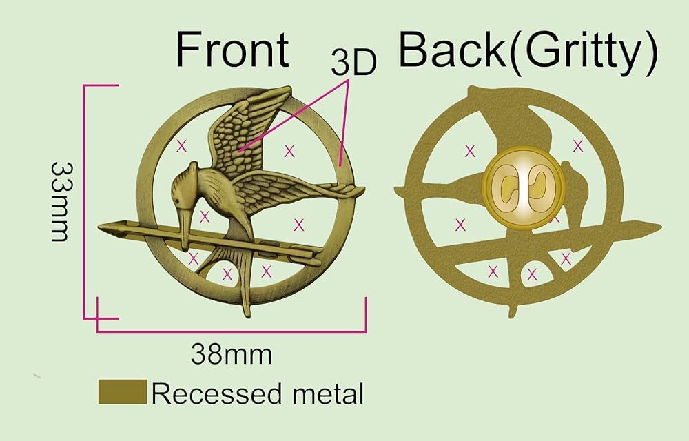 The Hunger Games, Mockingjay Pin Badge 33mm x 38mm, 2mm thick. Perfect for Backpacks, Jackets, and Hats, Iconic Movie Merchandise - A Symbol of Rebellion and Hope